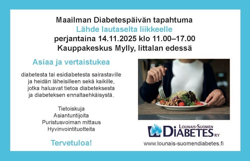 Maailman Diabetespäivän tapahtuma kauppakeskus Myllyssä 14.11.2025